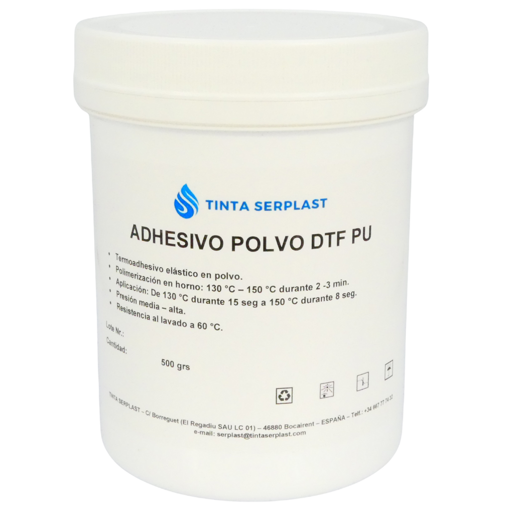 El Adhesivo en Polvo DTF PU está desarrollado con poliuretano ofreciendo una combinación única de suavidad, flexibilidad y excelente adherencia. Se adapta perfectamente a procesos de impresión DTF (Direct to Film) y otras técnicas de transferencia térmica como hot stamping, flocado y transferencias especiales.